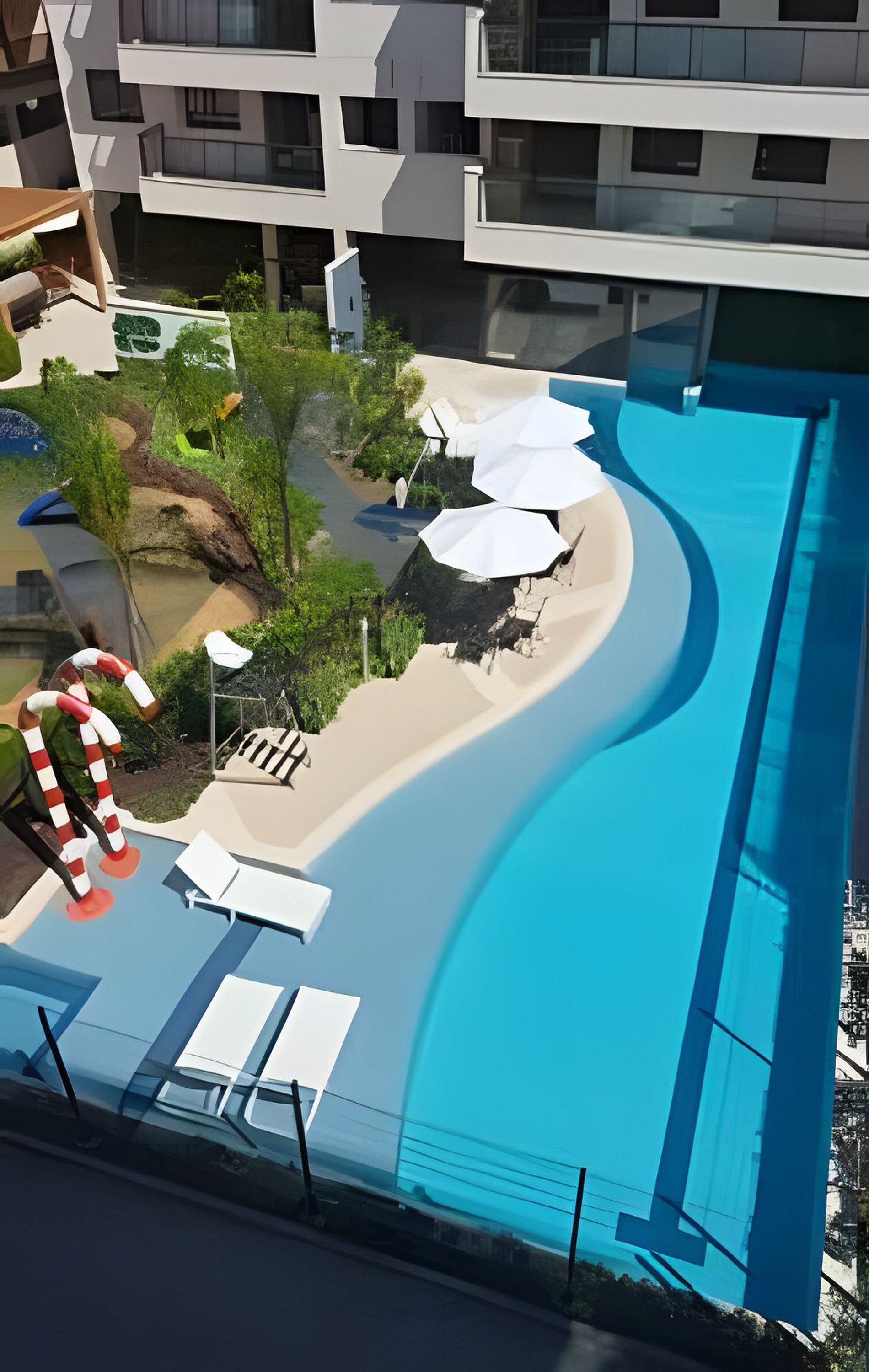 Os hóspedes podem utilizar a piscina, o playground e o estacionamento.