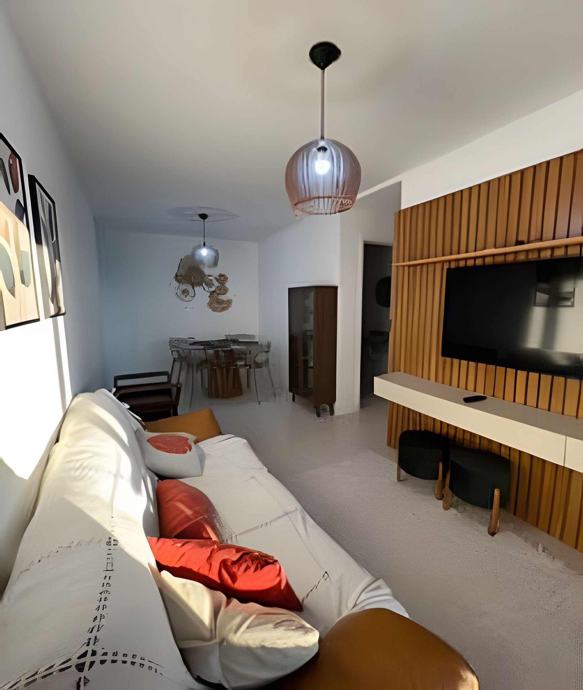 Apto confortável com 3 quartos, sendo 2 suítes, acomodando bem até 3 famílias; Cozinha equipada com utensílios em geral, micro-ondas, pipoqueira, geladeira, forno elétrico, sanduicheira e fogão a gás; Wi-fi; Quarto 1 (suíte): cama de casal, mesinha de cabeceira, varanda e ar condicionado; Quarto 2: cama de casal, armário, 3 colchões reservas e arcondicionado; Quarto 3: 2 camas de solteiro, 1 cama auxiliar, ar condicionado; Sala com tv smart, sofá de 3 lugares, mesa com 4 cadeiras, ampla varanda com 2 mesas altas e 4 bancos altos. Área de serviço; Temos 2 vagas cobertas para seu veículo. Nossa localização privilegiada a 80 metros da praia do Forte próximo aos quiosques da orla.