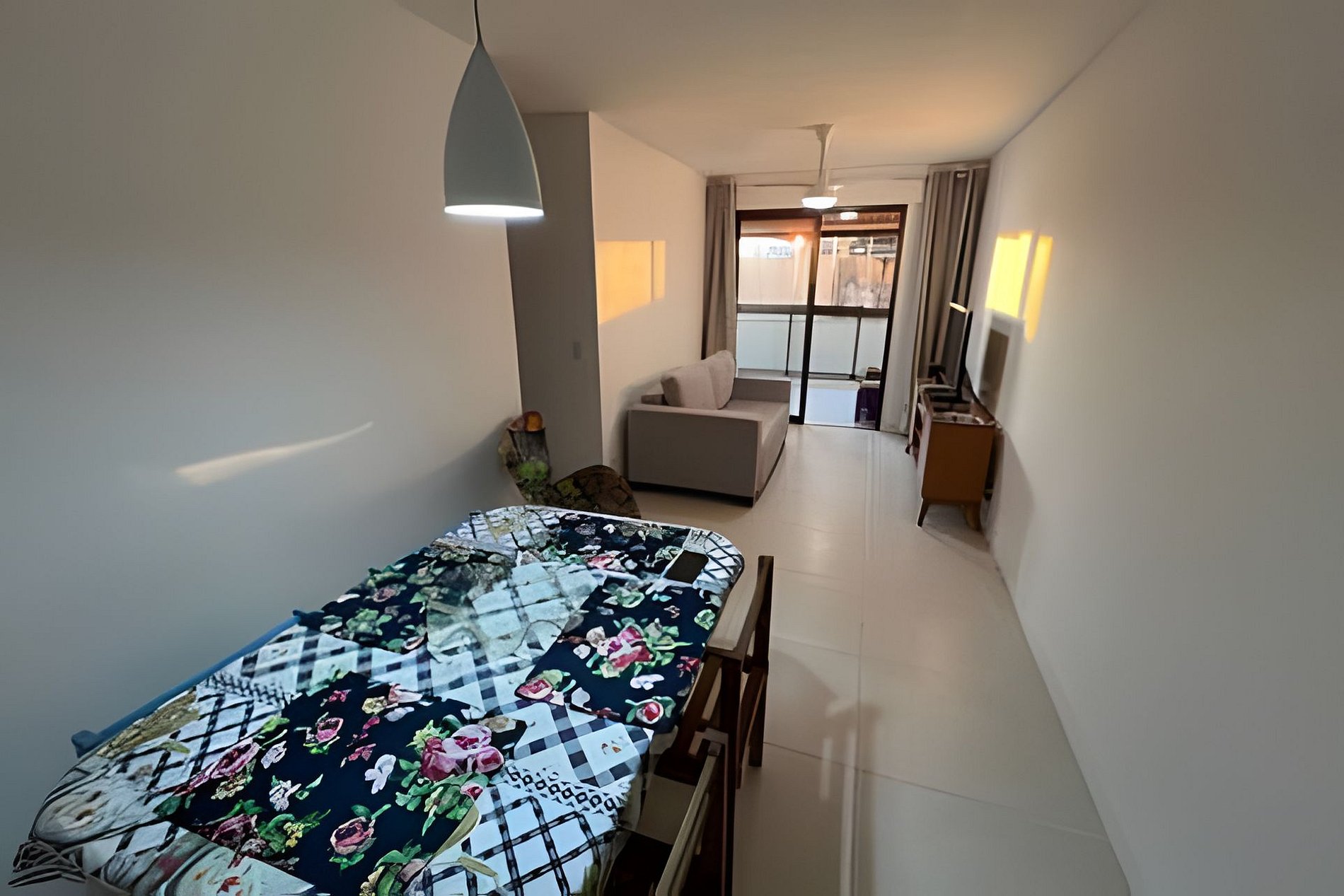 Apartamento novo, recém-lançado, com 3 quartos, sendo 1 suíte, e varanda em L. Espaço acolhedor para até 8 pessoas, contando com camas de casal nos três quartos. Na sala, sofá-cama confortável, mesa de jantar e TV. Excelente localização, a apenas 2 minutos a pé da Praia do Forte. Cozinha equipada com fogão, geladeira, micro-ondas e utensílios. Duas vagas de garagem disponíveis no prédio.